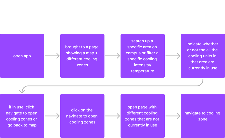 In the beginning, many of the ideas I thought of involved providing shade, whether that be through the construction of pavilions, study pods, or planting more trees. However, after writing down all the pros and cons of each idea, I realized that implementing pavilions, pods, or new trees on campus would be a lengthier process and create even more problems in the long run. In the end, I decided that the most effective solution would be a smart cooling system that students could control.